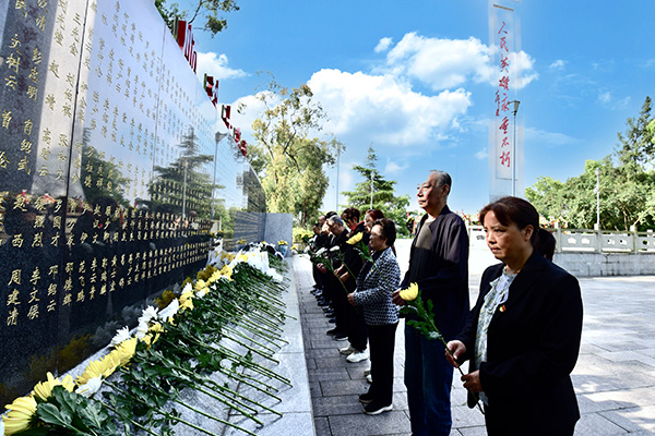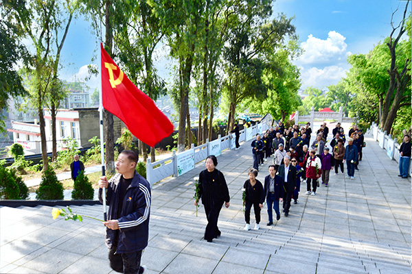 默哀仪式结束后,全体党员依次绕行纪念碑,缓步瞻仰英烈墓碑,轻轻擦拭墓碑浮尘,逐一献上手中鲜花,驻足凝视英烈事迹简介,深刻感悟革命先辈在艰苦卓绝的岁月里,坚守信仰、浴血奋战、不怕牺牲的英雄气概,接受深刻的红色精神洗礼。