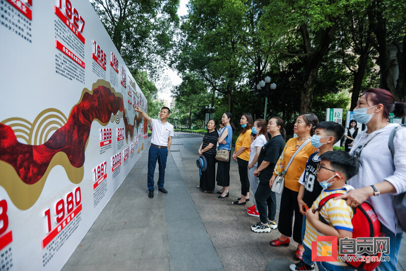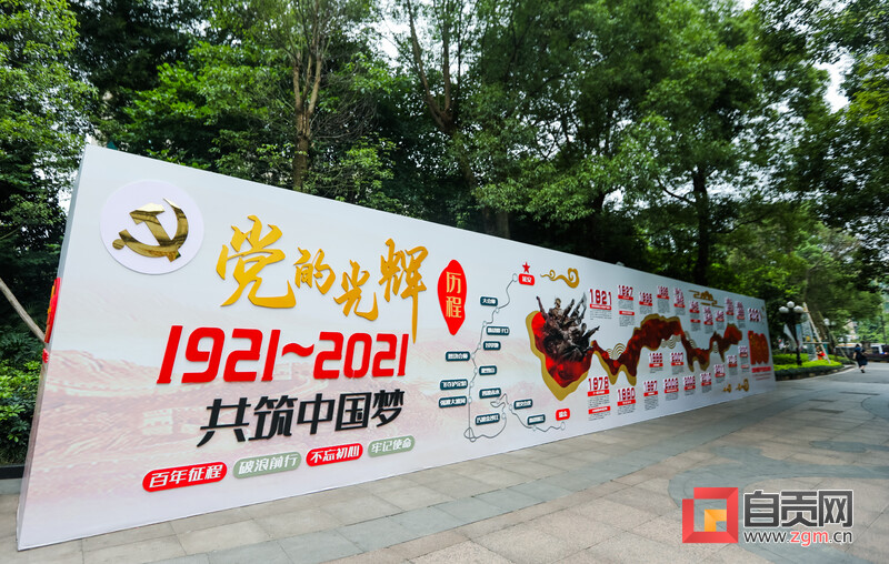 5月24日,记者走进沿滩区卫坪街恒大绿洲小区,浓郁的红色氛围扑面而来。大门口,一块巨幅党史展板映入眼帘,大气恢宏,吸引了众多居民驻足观看。 这块名为“辉煌历程”的党史展板长21米,寓意着1921年建党,上面梳理了中国共产党成立100年以来21个具有里程碑意义的大事记,主要包括大革命时期、土地改革时期、抗战时期、民主革命时期、社会主义建设时期、改革开放时期等各阶段内容,展现了中国共产党团结带领中国人民从站起来、富起来到强起来的伟大飞跃。