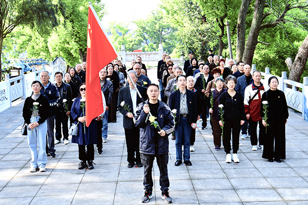 默哀仪式结束后,全体党员依次绕行纪念碑,缓步瞻仰英烈墓碑,轻轻擦拭墓碑浮尘,逐一献上手中鲜花,驻足凝视英烈事迹简介,深刻感悟革命先辈在艰苦卓绝的岁月里,坚守信仰、浴血奋战、不怕牺牲的英雄气概,接受深刻的红色精神洗礼。