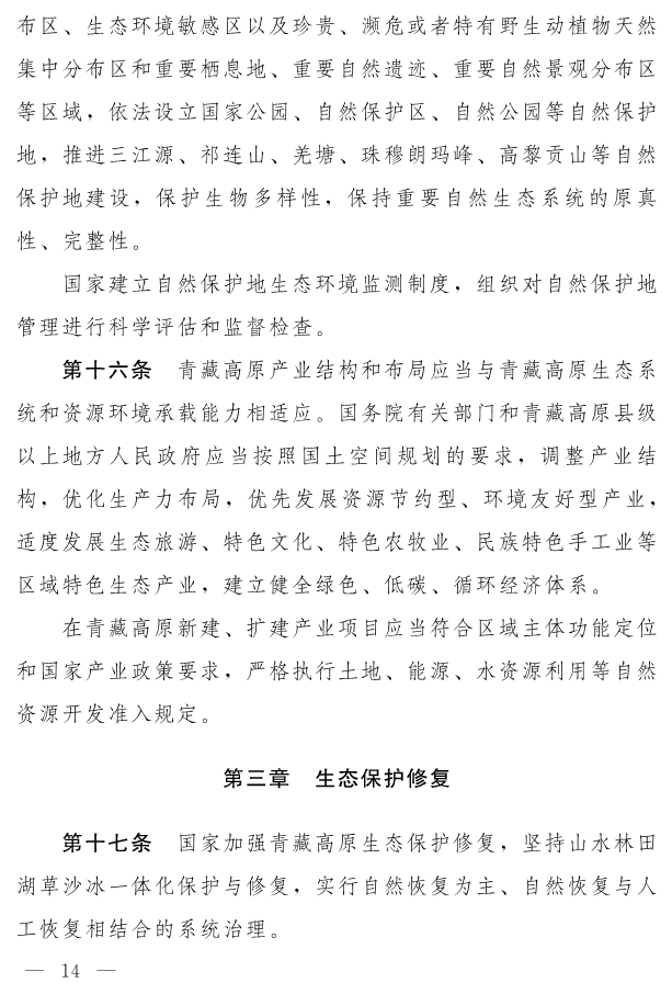 中华人民共和国青藏高原生态保护法(草案)
